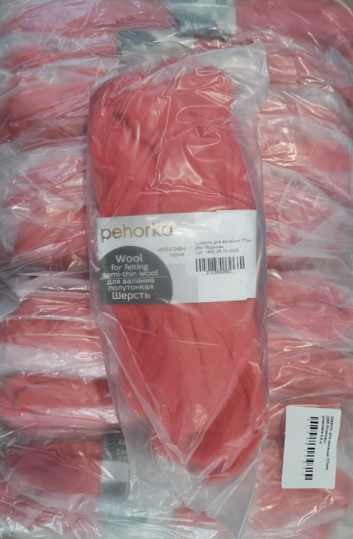 Состав Шерсть для валяния Пехорка: 100% полутонкая шерсть 50 г. Гребенная лента для валяния из 100% шерсти.